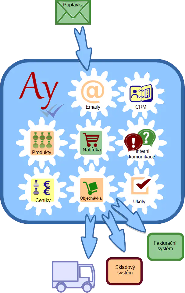 Pro část vašeho obchodního procesu můžete používat jiné systémy. Propojíme je s AyMINE