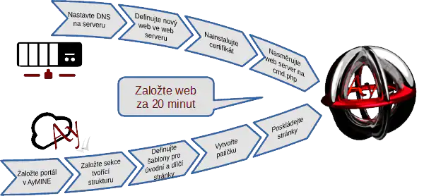 - Pro směrování vlastní domény (např. www.aymine.com ) na portál je třeba kontaktovat administrátory, kteří vám nasměrují doménu a sdělí, jak je třeba konfigurovat DNS.