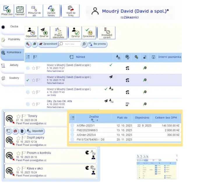 - With one click you can see what they have enquired about, ordered, what has been dealt with.