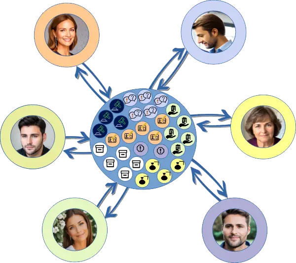 - You can share individual components of the model with others via AyMINE and work with them simultaneously in the model.